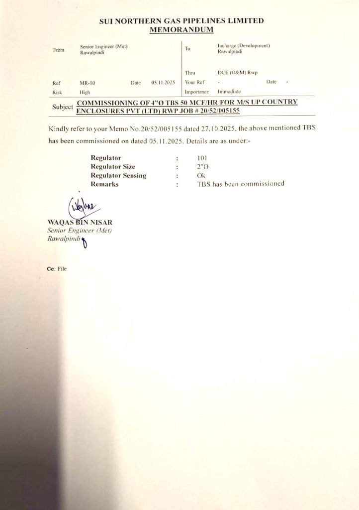 Gas Connection in Up Country Enclosures Housing Scheme has been commissioned